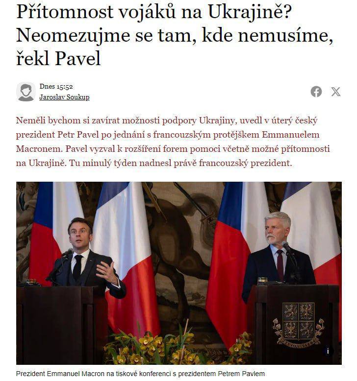"Я за то, чтобы искать новые пути, включая продолжение дискуссии о возможном присутствии в Украине. Давайте не ограничивать себя там, где мы не должны. Мы сами решаем, какую форму помощи мы выберем", — заявил Павел.