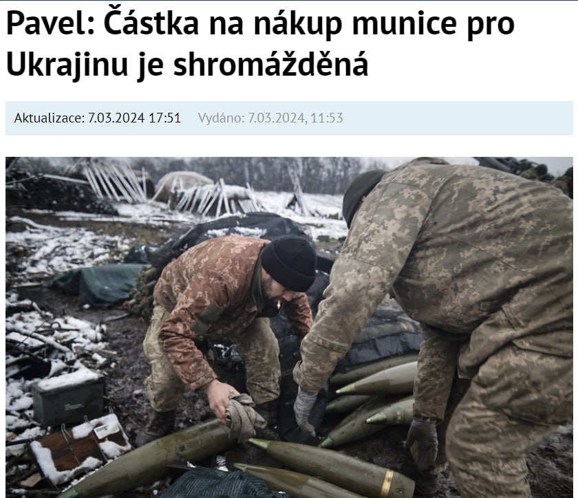 Напомним, на днях агентство Bloomberg сообщало, что союзники Украины почти собрали всю необходимую сумму на закупку сотен тысяч снарядов для Киева по инициативе Чехии. Боеприпасы могут быть доставлены в течение нескольких недель.