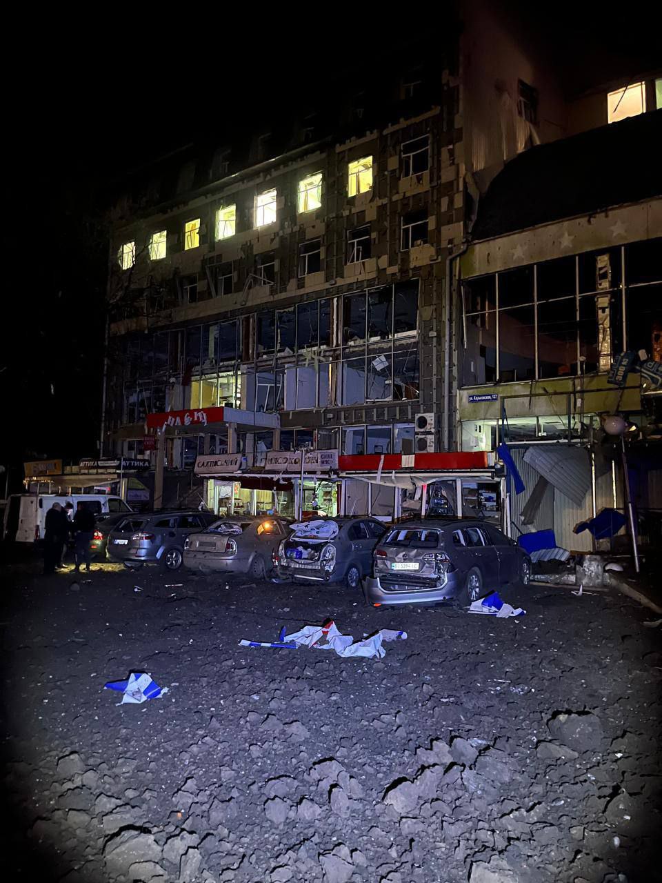 Прилет повредил несколько зданий, в том числе гостиницу. Также пострадали 12 автомобилей.
