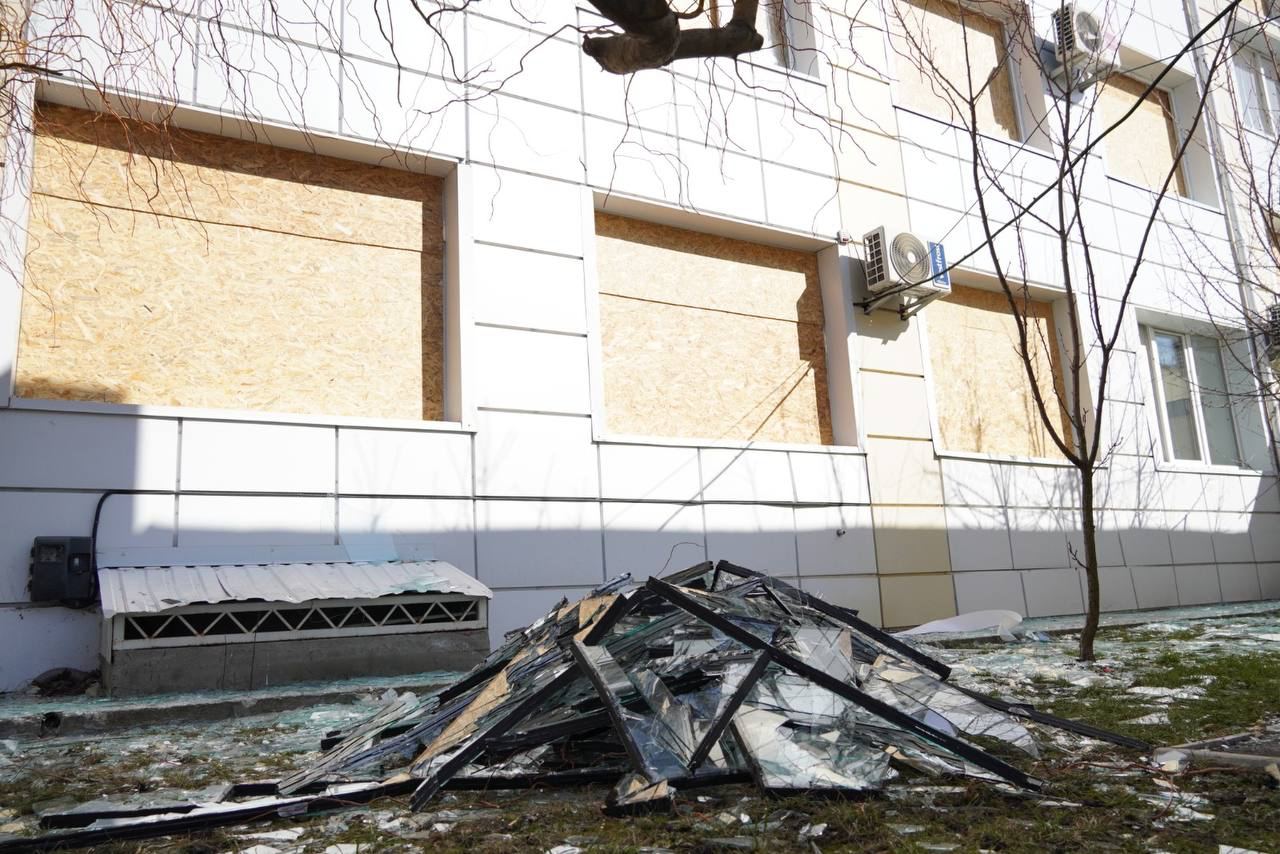 Повреждены помещения школы, центральной городской больницы, областного центра экстренной медицинской помощи, водоканала.