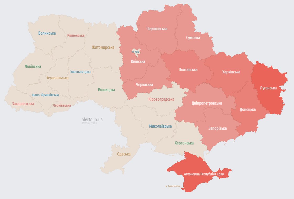 20.37 Воздушная тревога в северных и восточных областях из-за угрозы баллистики, сообщают ВСУ.