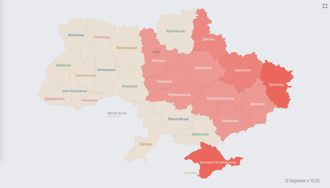 10.38 Угроза баллистики в областях, где объявлена тревога, сообщают Воздушные силы.