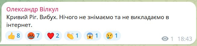 18.40 Сообщают о взрыве в Кривом Роге. В регионе объявлена тревога.