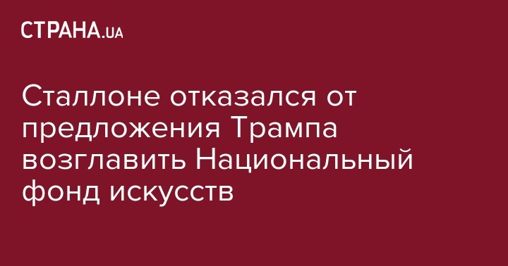 Американский актер Сильвестр Сталлоне отказался от предложенного Дональдом Трампом поста главы Национального фонда искусств. Об этом сообщает Variety.
