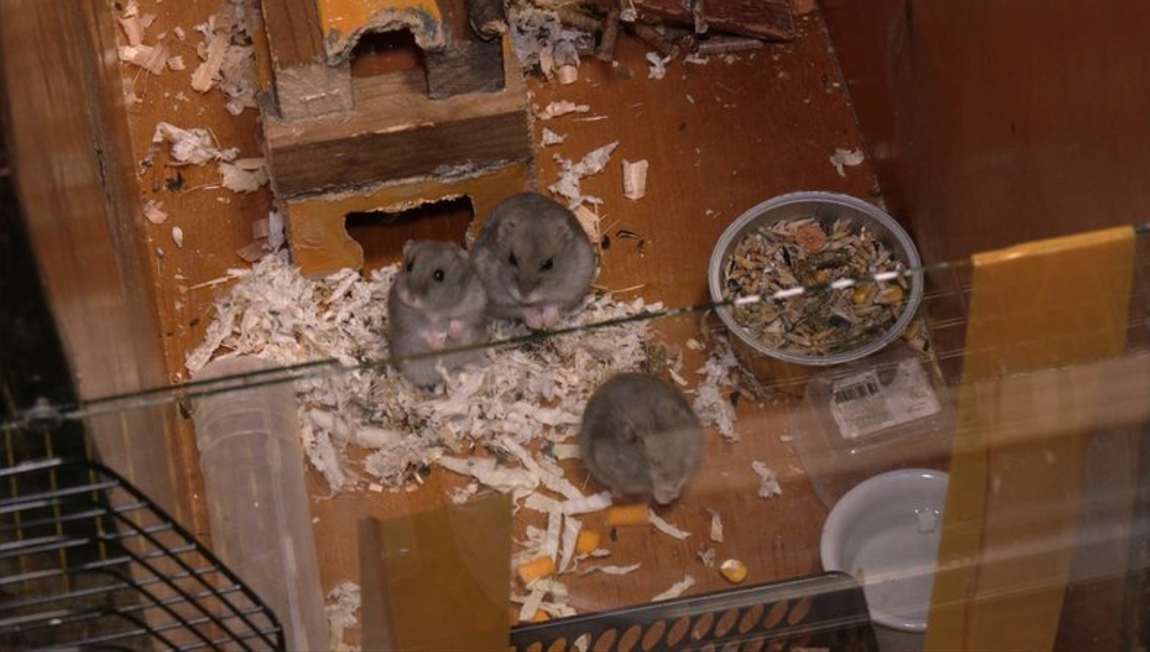 Спасенных от войны хомяков она поселила в двух комнатах. Всем не хватало отдельных клеток, поэтому они живут по двое-трое.