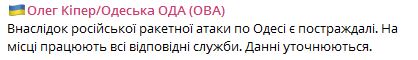 В пятницу, 15 марта, в Одессе есть пострадавшие после дневной ракетной атаки РФ.