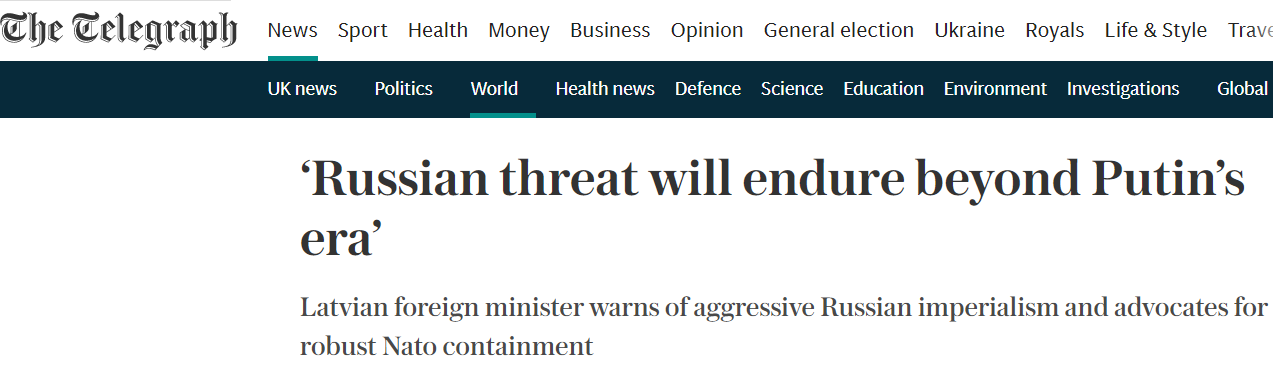 "С точки зрения НАТО, нам еще долго придется иметь дело с проблемной Россией, опасной Россией. Даже после окончания этой войны – а все войны в конце концов заканчиваются – мы все равно будем иметь проблему в России, которая не будет непосредственно связана с правлением Путина", – сказал Кариньш.