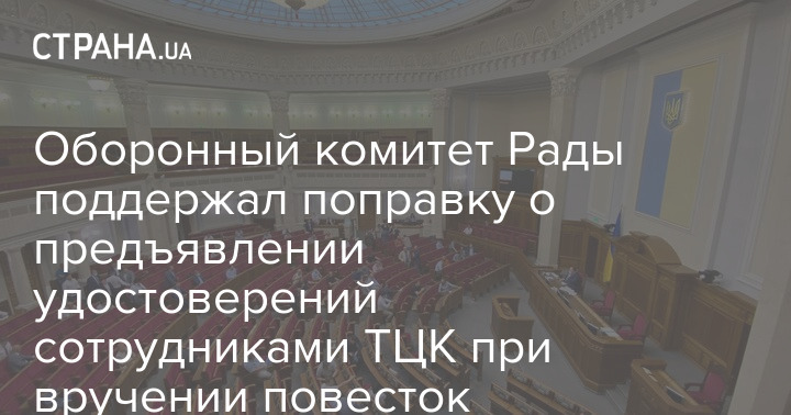 Оборонный комитет парламента поддержал поправку в закон о мобилизации, согласно которой сотрудники ТЦК должны будут представляться и предъявлять свои удостоверения при вручении повесток.