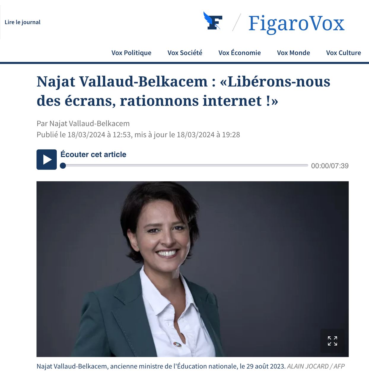 Ограничить объем доступного человеку интернета призывает бывший министр образования Франции, а ныне директор разных некоммерческих организаций Наджат Валло-Белькасем.