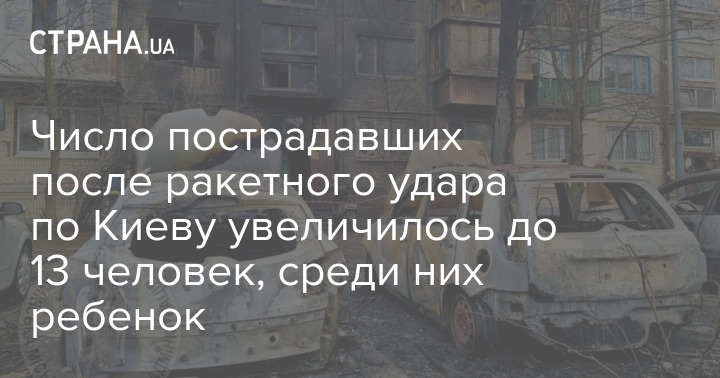 Количество пострадавших от ракетной атаки в Киеве увеличилось до 13 человек. Среди них один ребенок.