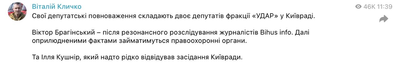 Недавно стало известно, что начальник киевского метро написал заявление на увольнение после. Кличко анонсировал, что Брагинский будет уволен после 10 лет управления метрополитеном из-за фактов, выявленных в расследовании журналистами. Те рассказали о незадекларированном имуществе чиновника на 52 млн грн.