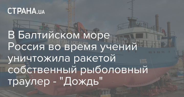 Российский рыболовный траулер "Капитан Лобанов" затонул недалеко от города Пионерского в Калининградской области после попадания в него ракеты ВМФ РФ во время учений.