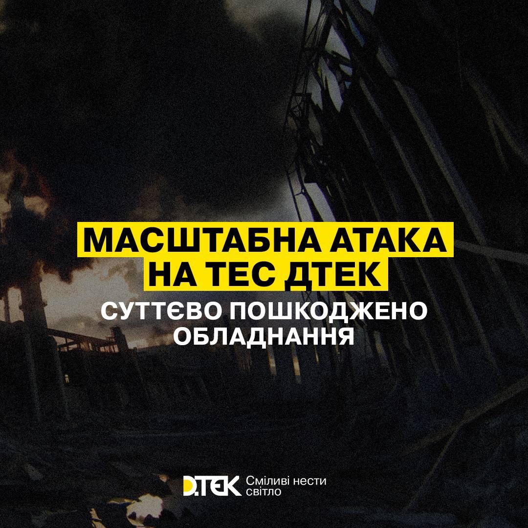 10.28 РФ атаковала и теплоэлектростанции, сообщает ДТЭК.