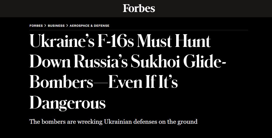 "Как только Украина введет их в бой в ближайшие недели или месяцы, Украина потеряет F-16 и их пилотов – потенциально многих из них. Большой вопрос в том, что Киев выиграет от этой жертвы. Если украинское командование действительно осознает опасность, которую российские КАБ представляют для украинских позиций на земле, они должны агрессивно развернуть F-16 и нацелиться на российские "Сухие" с помощью смертоносных планирующих бомб", – пишет Forbes.