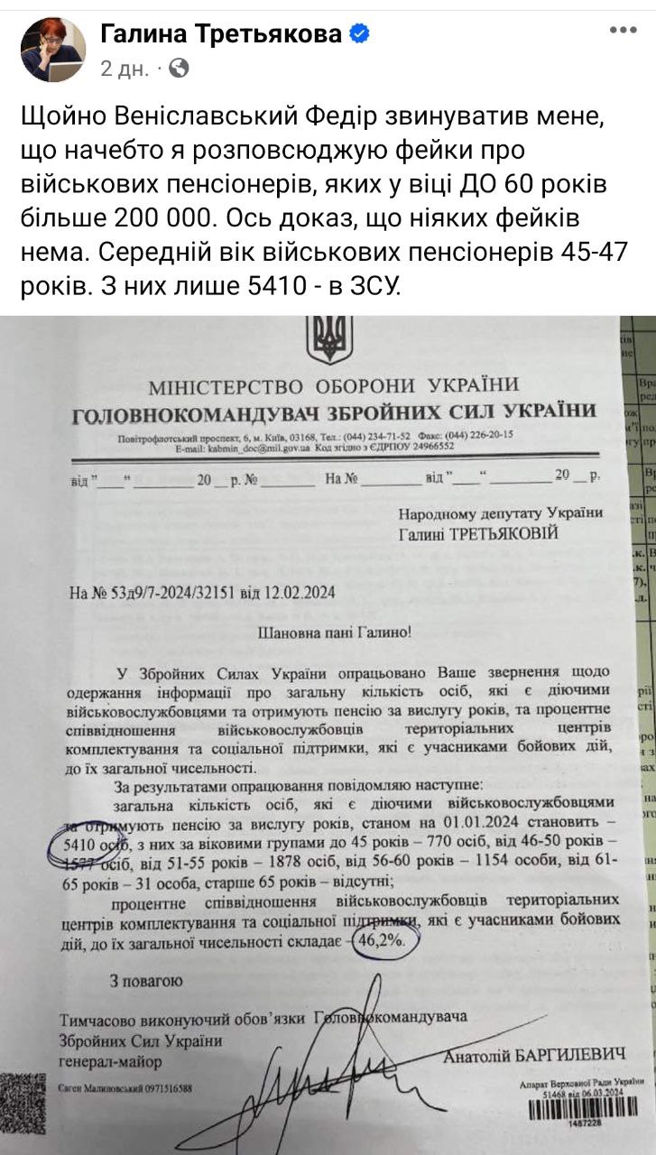 Участниками боевых действий из них являются 46,2%, говорится в официальном ответе Минобороны Украины на запрос нардепа от "Слуги народа" Галины Третьяковой.