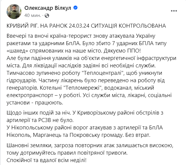В воскресенье, 24 марта, в Украине идет 760-й день войны с Россией.