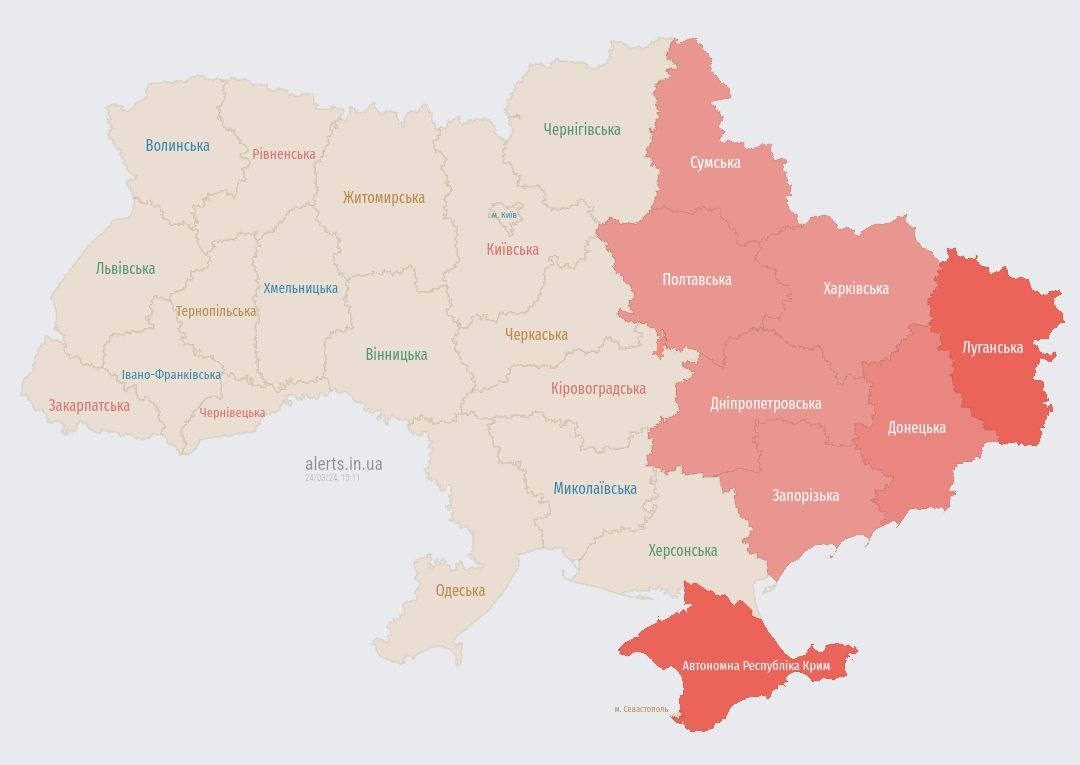 15:12 Угроза удара баллистическими ракетами на восточной части Украины.