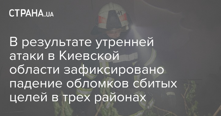 В результате утренней атаки в Киевской области зафиксировано падение обломков сбитых целей в трех районах