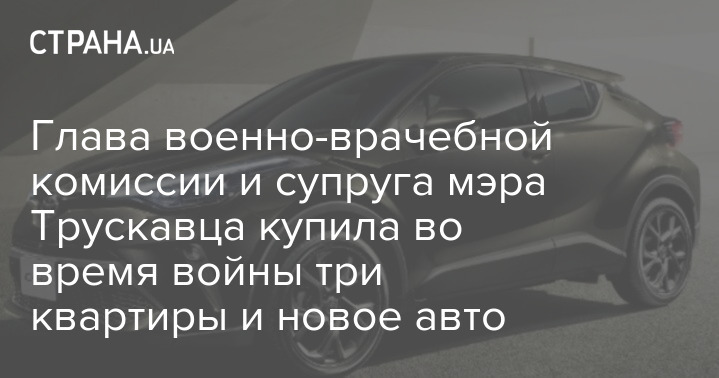 Глава военно-врачебной комиссии (ВВК) воинской части и супруга мэра Трускавца Наталья Кульчинская во время войны купила три квартиры в курортном Трускавце и новый автомобиль TOYOTA.
