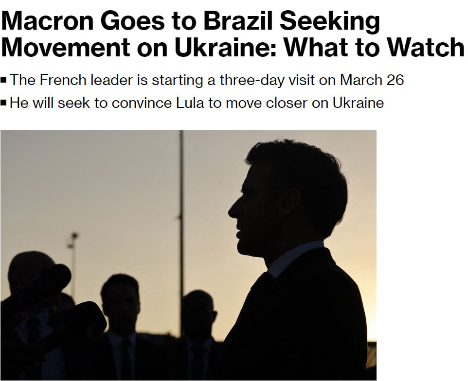 Макрон летит в Бразилию, чтобы попытаться убедить ее президента поддержать Украину