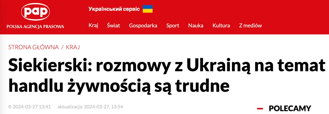 "Страна" анонсировала, что сегодня и завтра Варшава и Киев проведут важные переговоры по теме ввоза украинской сельхозпродукции.