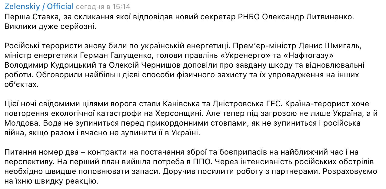 Сегодня ночью были атакованы россиянами Каневская и Днестровская ГЭС, сообщил президент Владимир Зеленский.