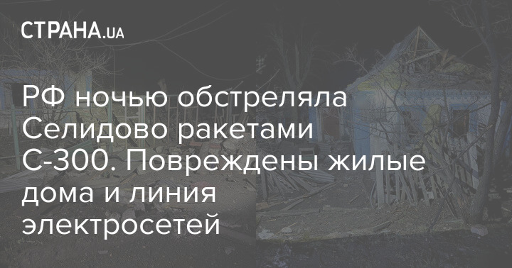 "Примерно в 00.25 российские войска обстреляли г. Селидово двумя ракетами С-300. В результате обстрела повреждены 15 частных жилых домов и линия электросетей. Погибших и потерпевших нет" - говорится в сообщении.