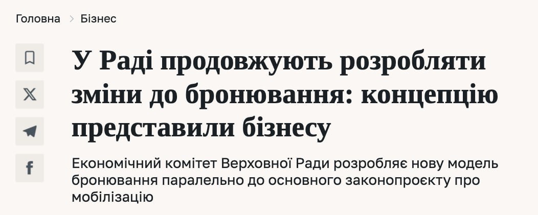 Перед этим нардеп Федор Вениславский сообщал, что в законопроекте о мобилизации будет расширена категория забронированных работников.