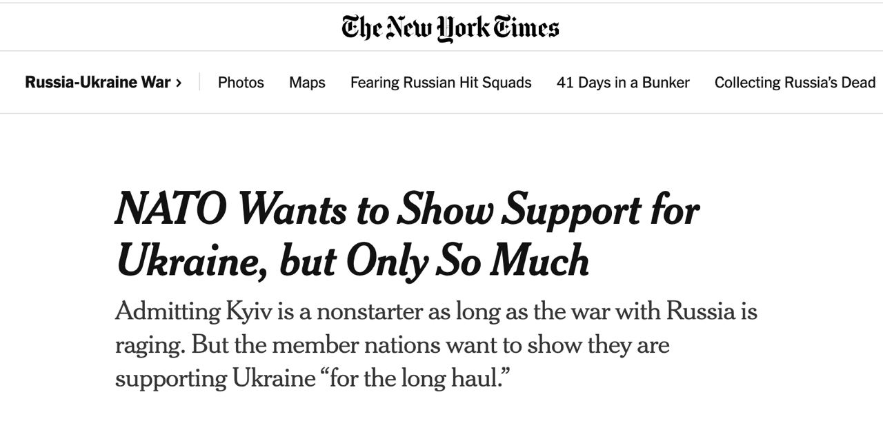Украина не получит официальное приглашение вступить в НАТО на июльском саммите в Вашингтоне. Против выступают США и Германия, опасаясь втягивания их в войну с РФ.