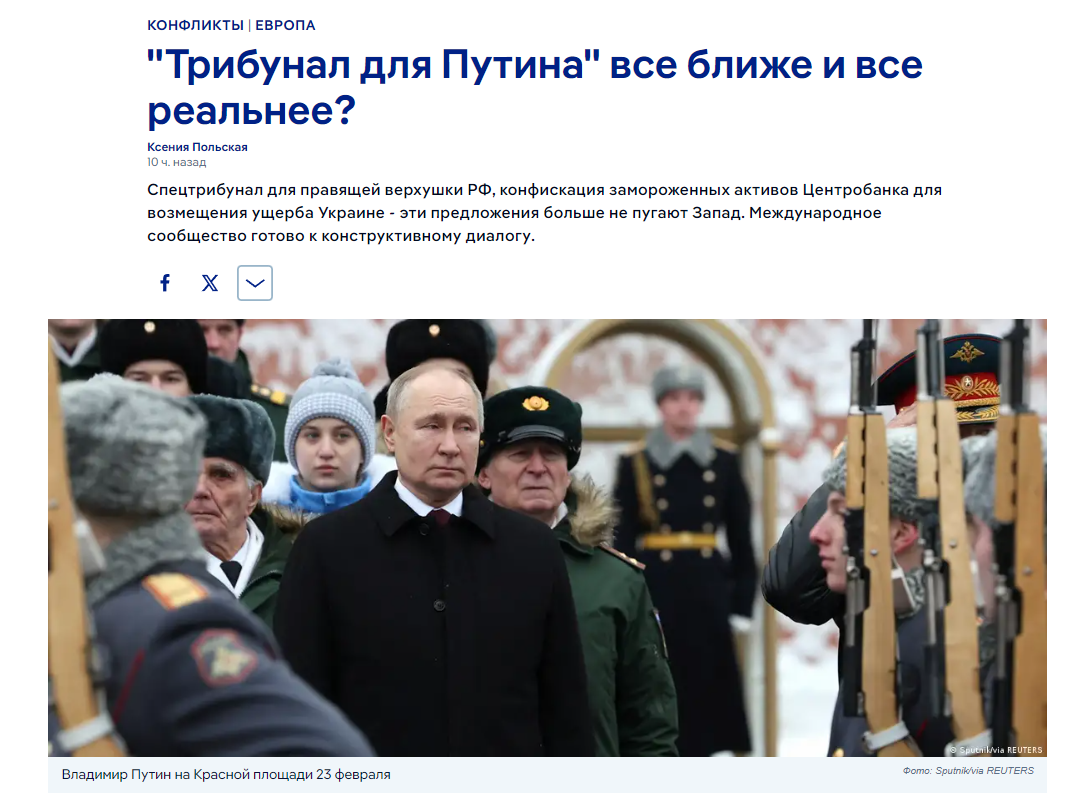 Трибунал в отношении президента РФ Владимира Путина с большой долей вероятности будет создан до конца этого года.
