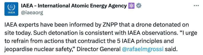 О взрыве сообщили эксперты МАГАТЭ. Чей это был дрон, не указывается.