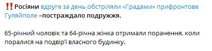 В воскресенье, 7 апреля, россияне дважды за день обстреляли "Градами" Гуляйполе в Запорожской области.