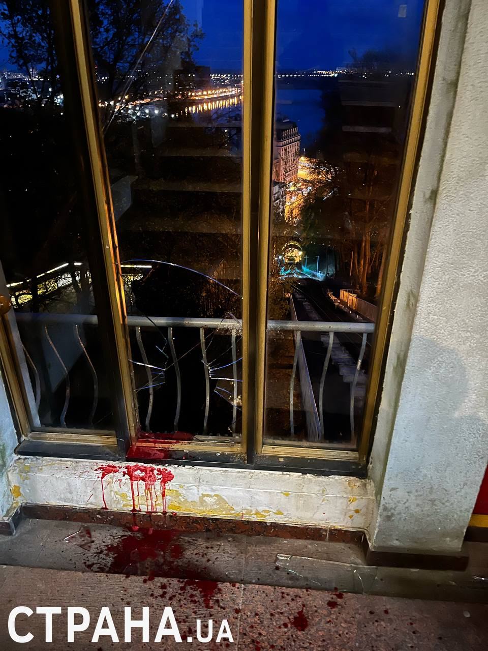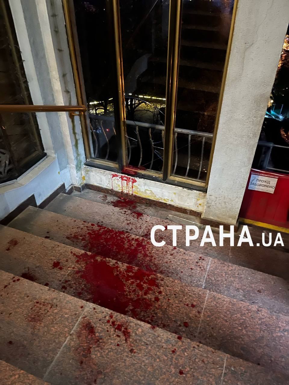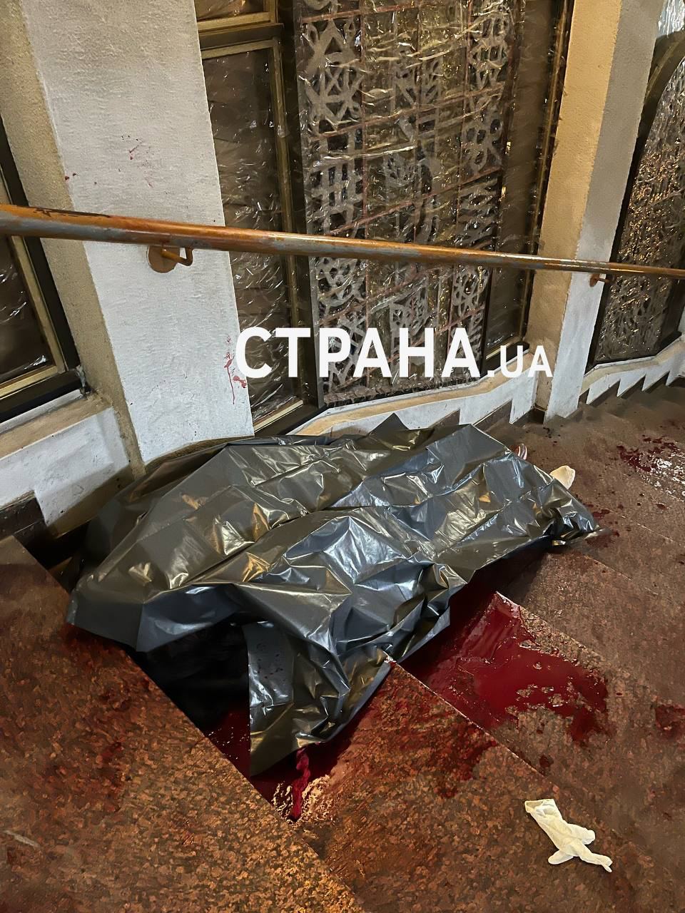 Источники "Страны" в правоохранительных органах предоставили фотографии с места трагедии. На них видны залитые кровью ступеньки и разбитое окровавленное окно.