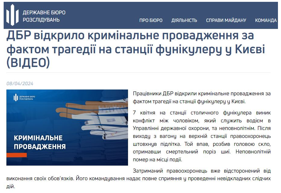7 апреля в Киеве на станции фуникулера было совершено убийство. По данным следствия, между мужчиной и юношей возник конфликт.