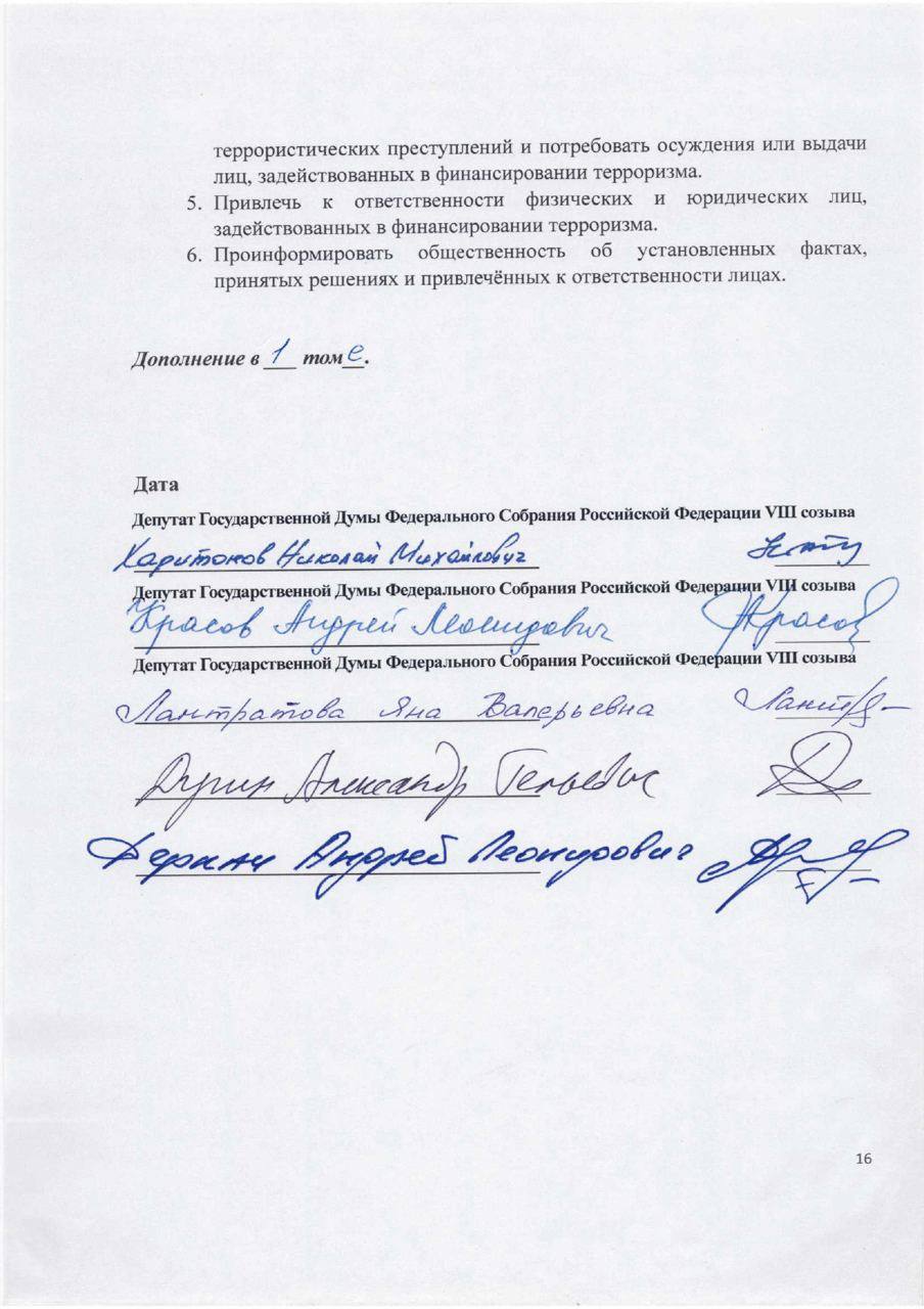 Это следует из заявления, подписанного тремя названными людьми и ещё двумя депутатами Госдумы РФ, которое Деркач опубликовал в своем телеграм-канале ещё 27 марта.