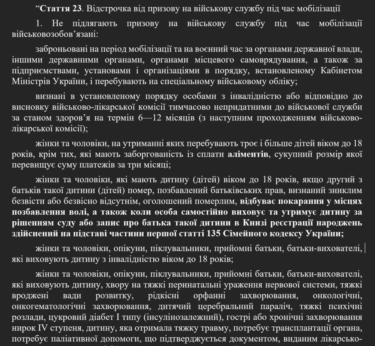 В новом законопроекте об ужесточении мобилизации перечислены категории граждан, имеющих право на отсрочку от мобилизации.