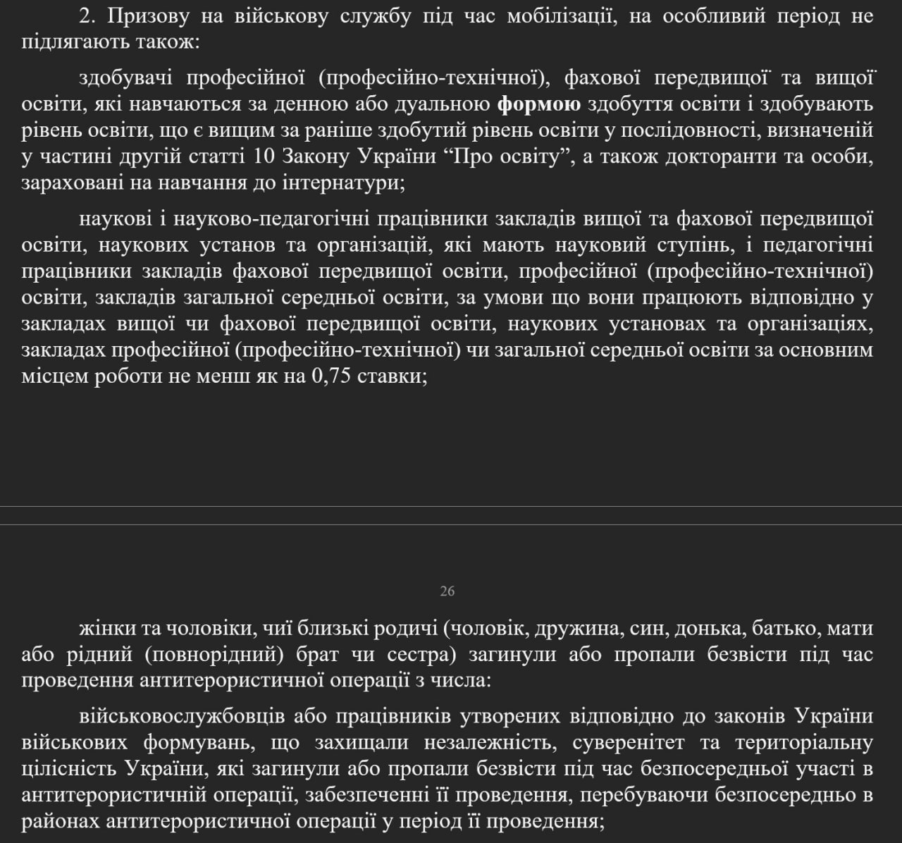 Также право на отсрочку имеют учащиеся дневной или дуальной формы обучения, которые получают образование уровня выше, чем предыдущее. То есть соискатели второго образования теряют отсрочку. Среди прочего это означает, что отсрочку для аспирантов оставили.