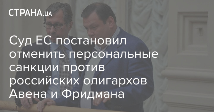 Суд первой инстанции в Люксембурге постановил отменить персональные санкции, которые Евросоюз ввел против российских олигархов Петра Авена и Михаила Фридмана.