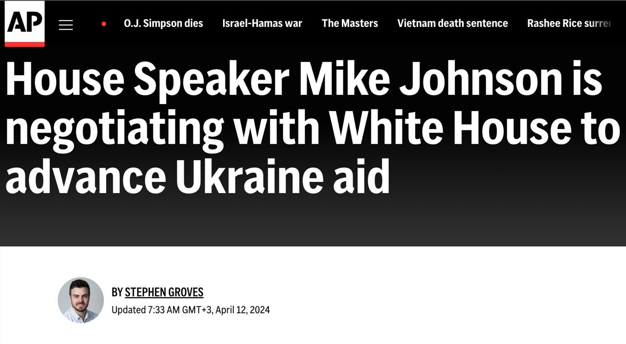 12:55 Спикер Палаты представителей Джонсон обсудил с Белым домом новый пакет помощи Украине, а также Израилю, но "соглашения достигнуто не было".