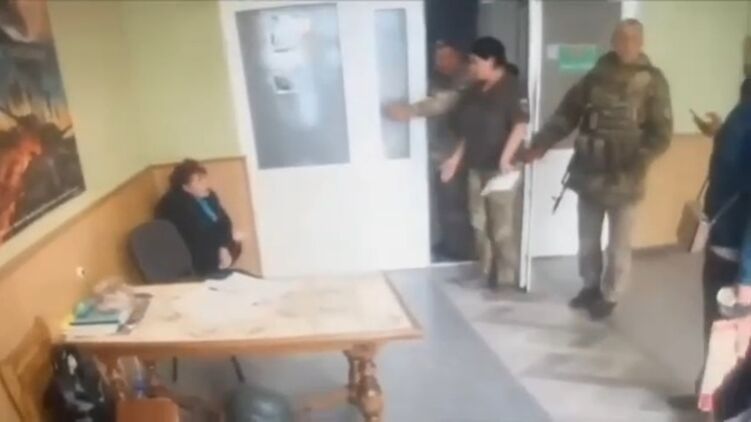 На новом видео из Дунаевцов видно, что женщина сидит в углу одного из кабинетов ТЦК и на виду у всех справляет нужду под возмущение одного из военкомов-мужчин.
