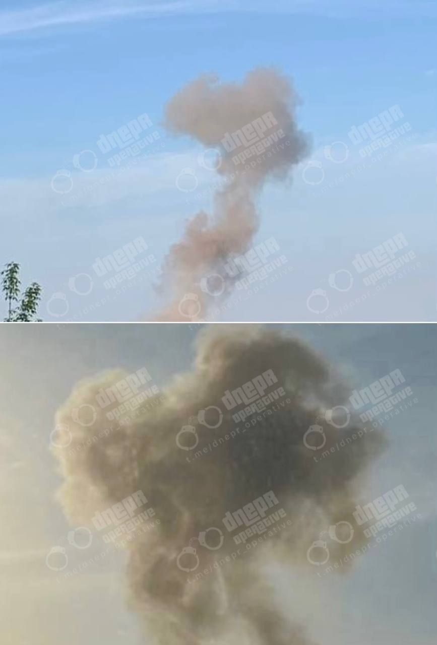 22.05 Воронка после падения сбитой ракеты в Днепре.