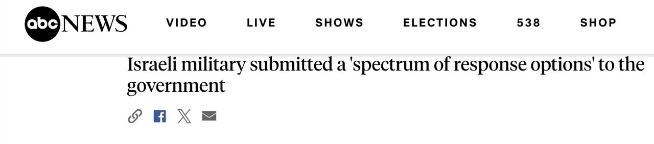 По его словам, израильские военные представили правительству широкий спектр вариантов ответа: от нанесения удара или отсутствия удара, а между этими двумя сценариями существует множество различных сценариев.