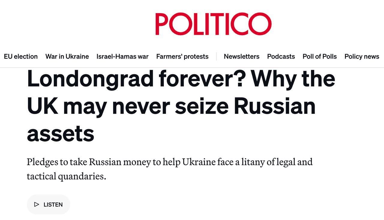 Великобритания, вероятно, никогда не сможет конфисковать российские активы - эксперт Politico