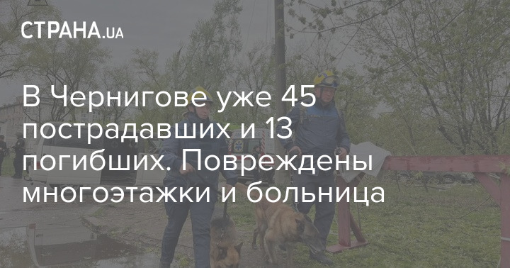 В Чернигове после ракетных ударов РФ уже 13 погибших и более 60 раненых, среди которых два ребенка.