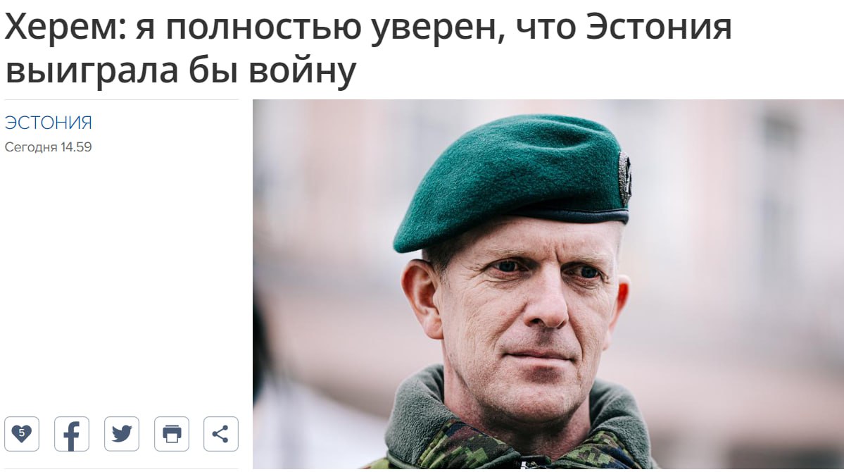 Глава Сил обороны Эстонии генерал Мартин Херем считает, что Эстония победит в войне с Россией.