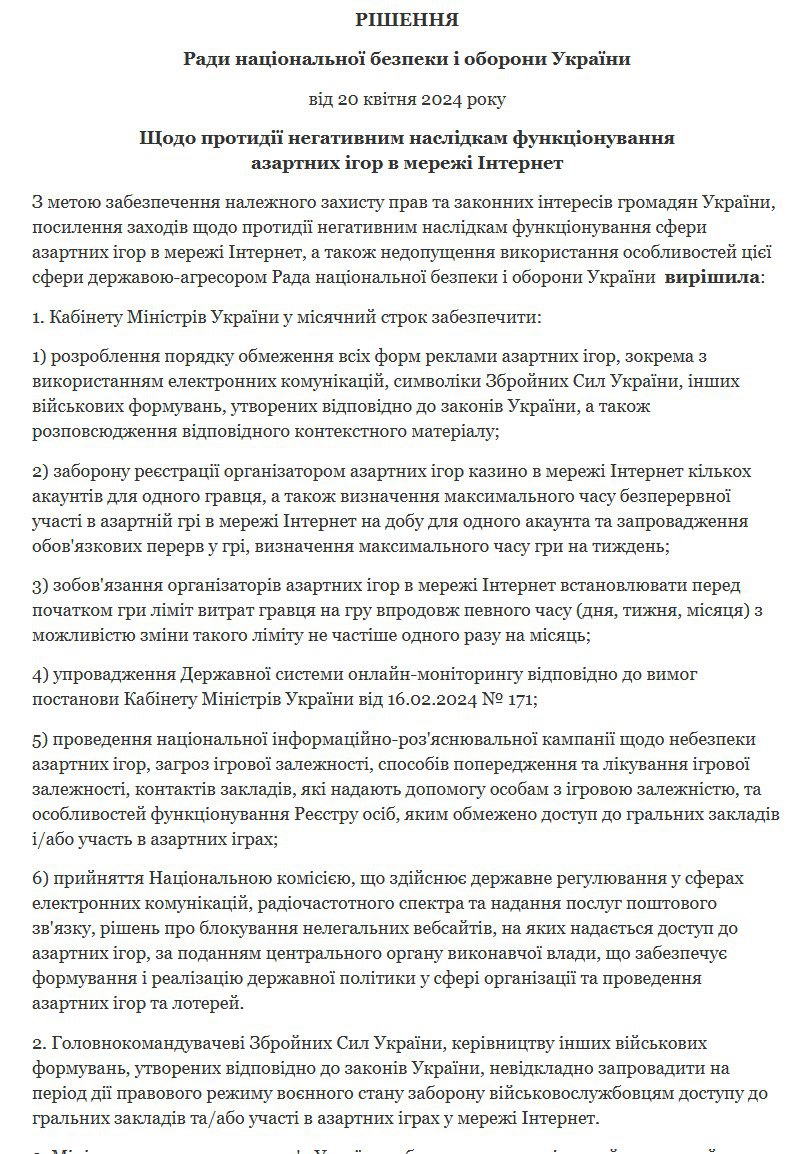 10:35 Президент Украины Владимир Зеленский своим указом ограничил азартные игры в интернете. Он ввел в действие решение СНБО, которое предполагает: