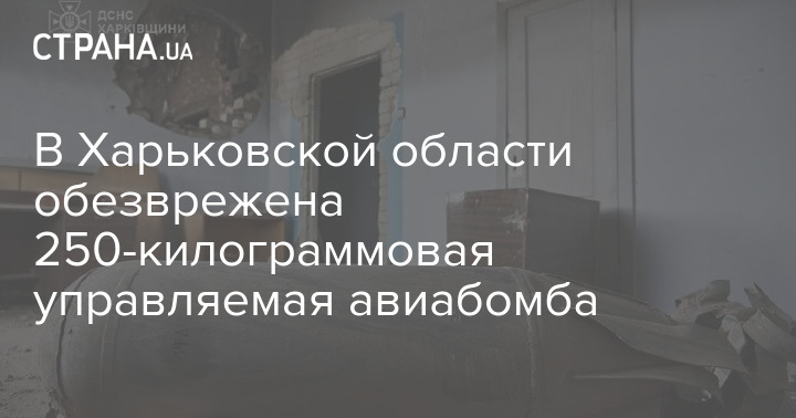 В Харьковской области обезврежена 250-килограммовая управляемая авиабомба, которая попала в гражданское помещение, но не взорвалась.