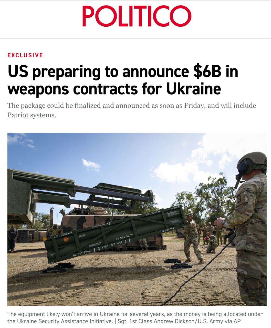 США сегодня могут объявить о заключенных контрактах на 6 миллиардов долларов под будущие военные поставки Украине.
