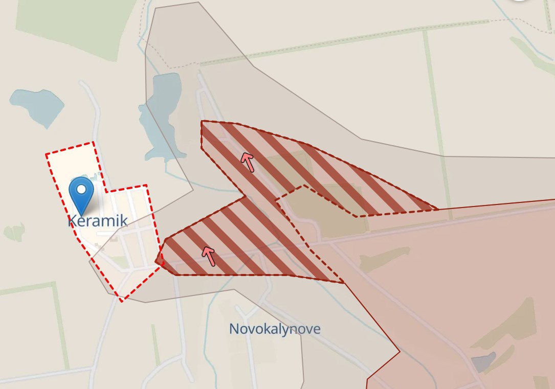Также, судя по карте, войска РФ продвинулись к востоку от Керамика к северу от Авдеевки и вошли на окраины поселка. При этом российские паблики с утра начали писать о том, что Керамик уже захвачен. Украина этого не подтверждала.