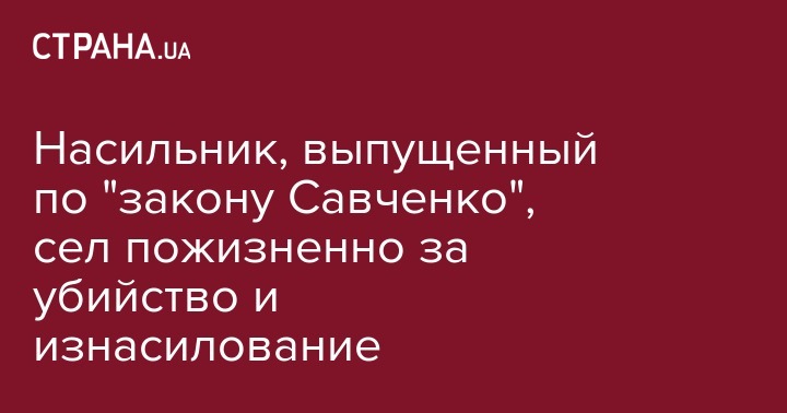 Насильник, выпущенный по "закону Савченко", сел пожизненно за убийство и изнасилование